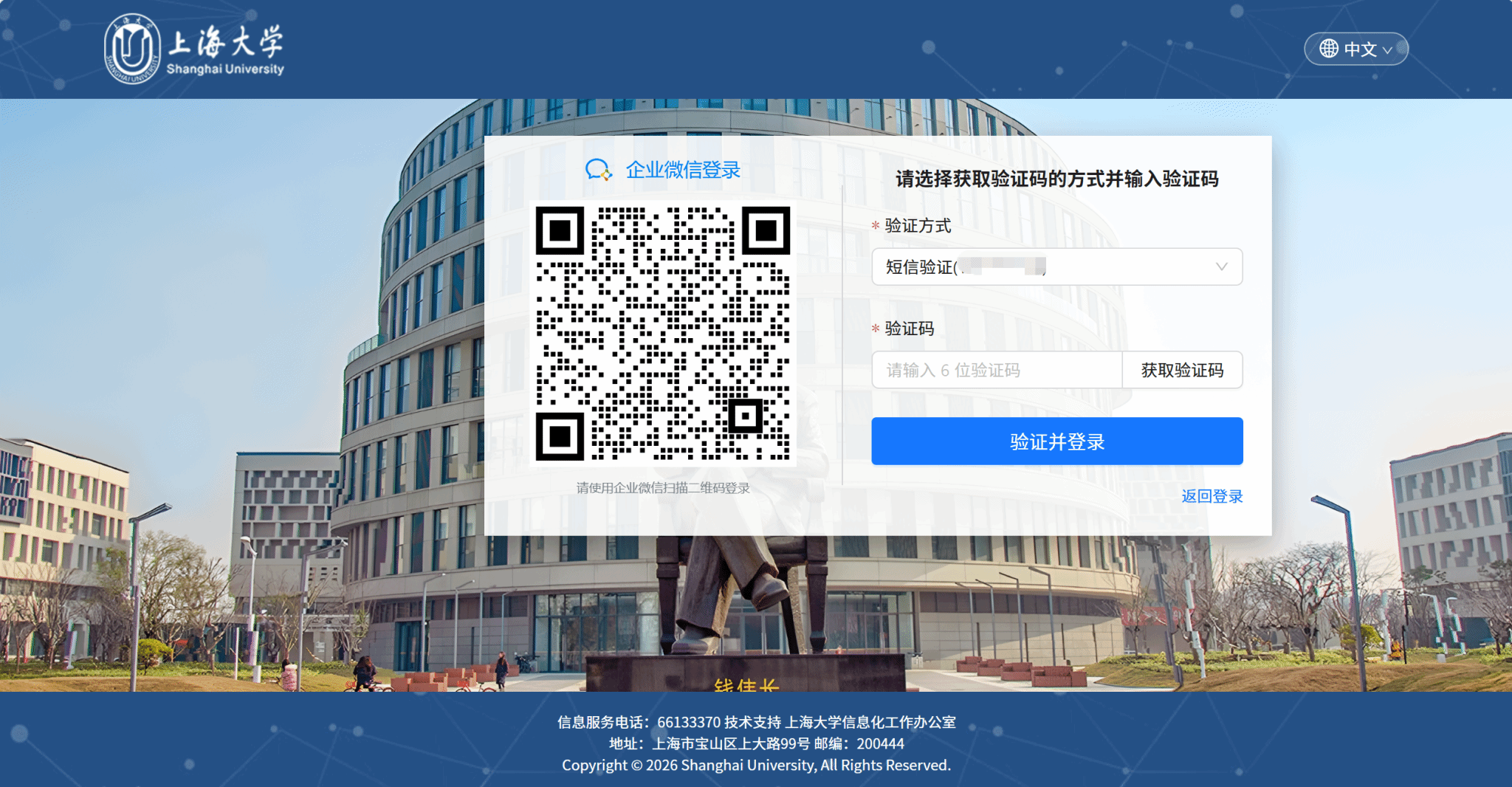 用户登录https://newmail.shu.edu.cn后,将出现统一身份登录验证,用户输入统一身份认证学/工号及密码并经手机或企业微信验证二次验证后,直接进入@shu.edu.cn邮箱。